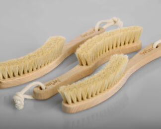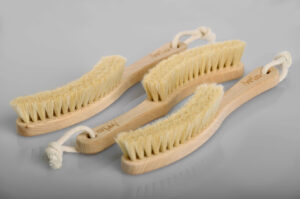 Pomoże nam dobrze dobrana szczotka. W naszym asortymencie  znajdziesz wiele  szczotek . Wyjątkowa szczotka do masażu na sucho,  nabita włóknem roślinnym z AGAWY , połączona  włosiem z KOZY    to idealna szczotka  do zabiegu pielęgnacyjnego skóry . Wygodny, wyprofilowany  trzonek szczotki  ułatwi użytkowaniem szczotki podczas masażu. Włosie z kozy delikatnie zmiękcza szczotkę, by nie była zbyt  twarda.