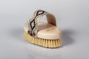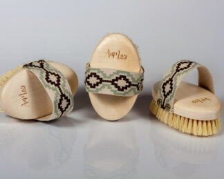 Naturalna szczotka do masażu na mokro oraz – na sucho według indywidualnych upodobań. Włókno z agawy jest twarde, dlatego polecane jest osobą preferującym mocniejszy masaż lub już zaznajomionym ze szczotkowaniem ciała. Szczotka  wykonana z drewna jaworowego i roślinnych włókien z liści agawy zaprojektowana z myślą o  pielęgnacji skóry-łączy skuteczny masaż z wyjątkowym wyglądem szczotki, inspirowany  etnicznymi  wzorami na pasku. Nie tylko pięknie się prezentuje, ale też zapewnia wygodny chwyt podczas masażu.