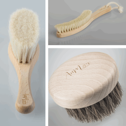 • Szczotka bukowa z kozim włosiem – niezwykle miękka , w w tym zestawie polecana  jako narzędzie do holistycznego masażu twarzy i relaksu. Pomaga  się odpręży, wyciszyć i złagodzić napięcia dnia codziennego.